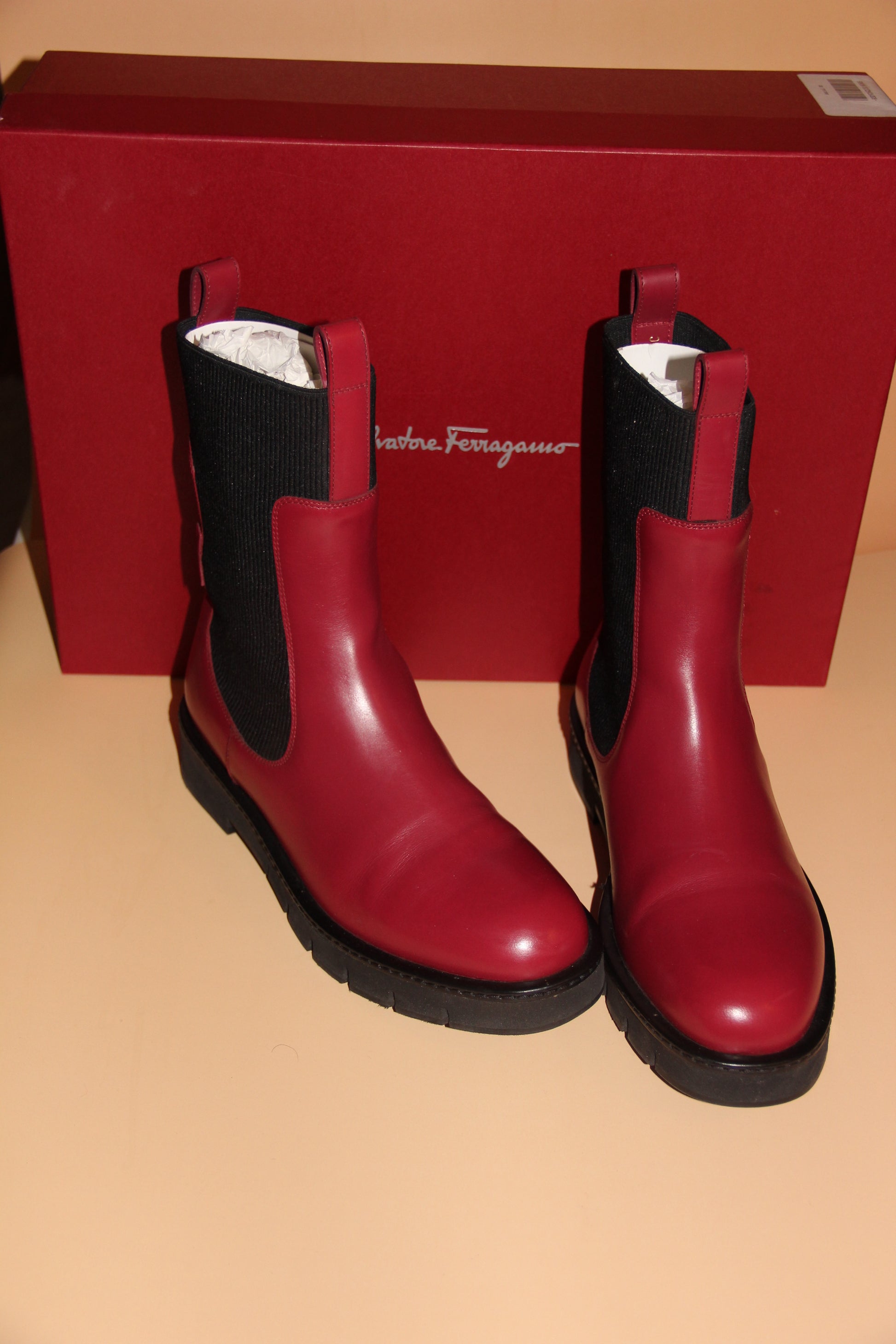Bottines Ferragamo modèle Chelsea neuve jamais portée, de couleur rouge bordeaux pour femme, T.40 en parfait état, made in Itlay.