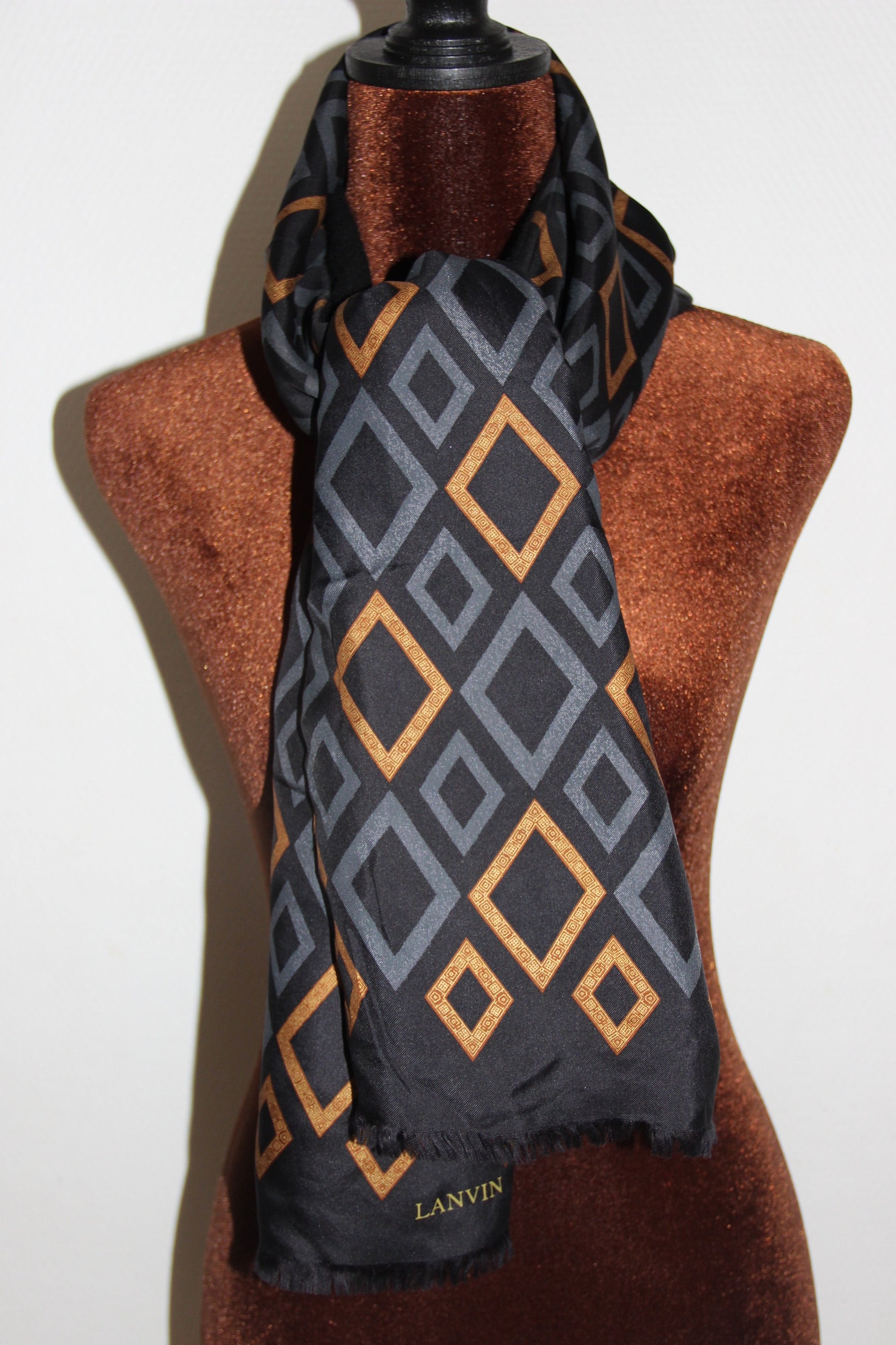Très jolie écharpe pour homme de la maison Lanvin - Bi matières à losanges.