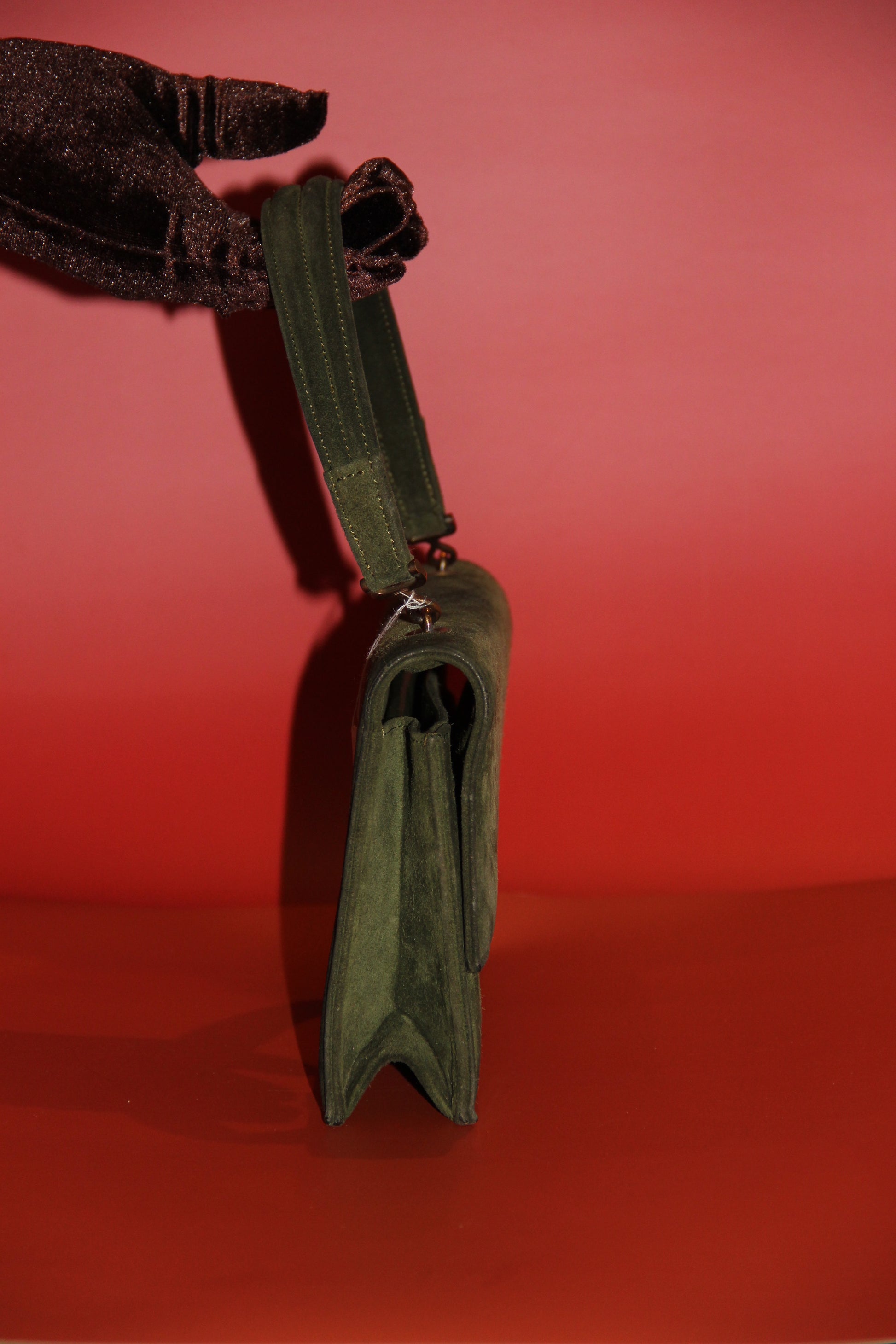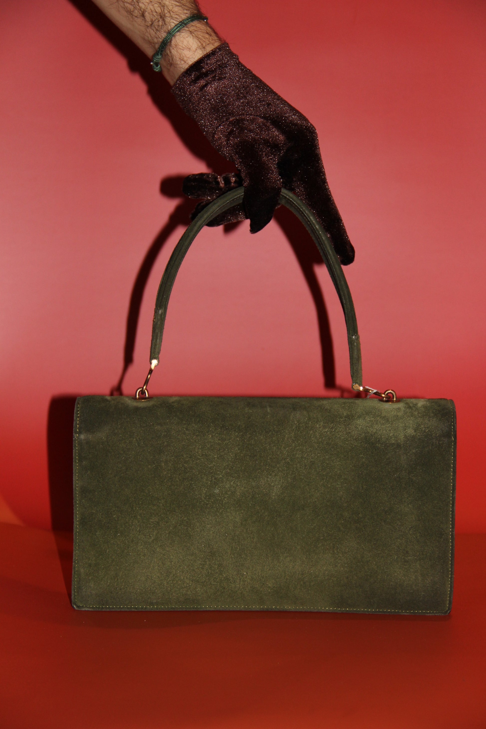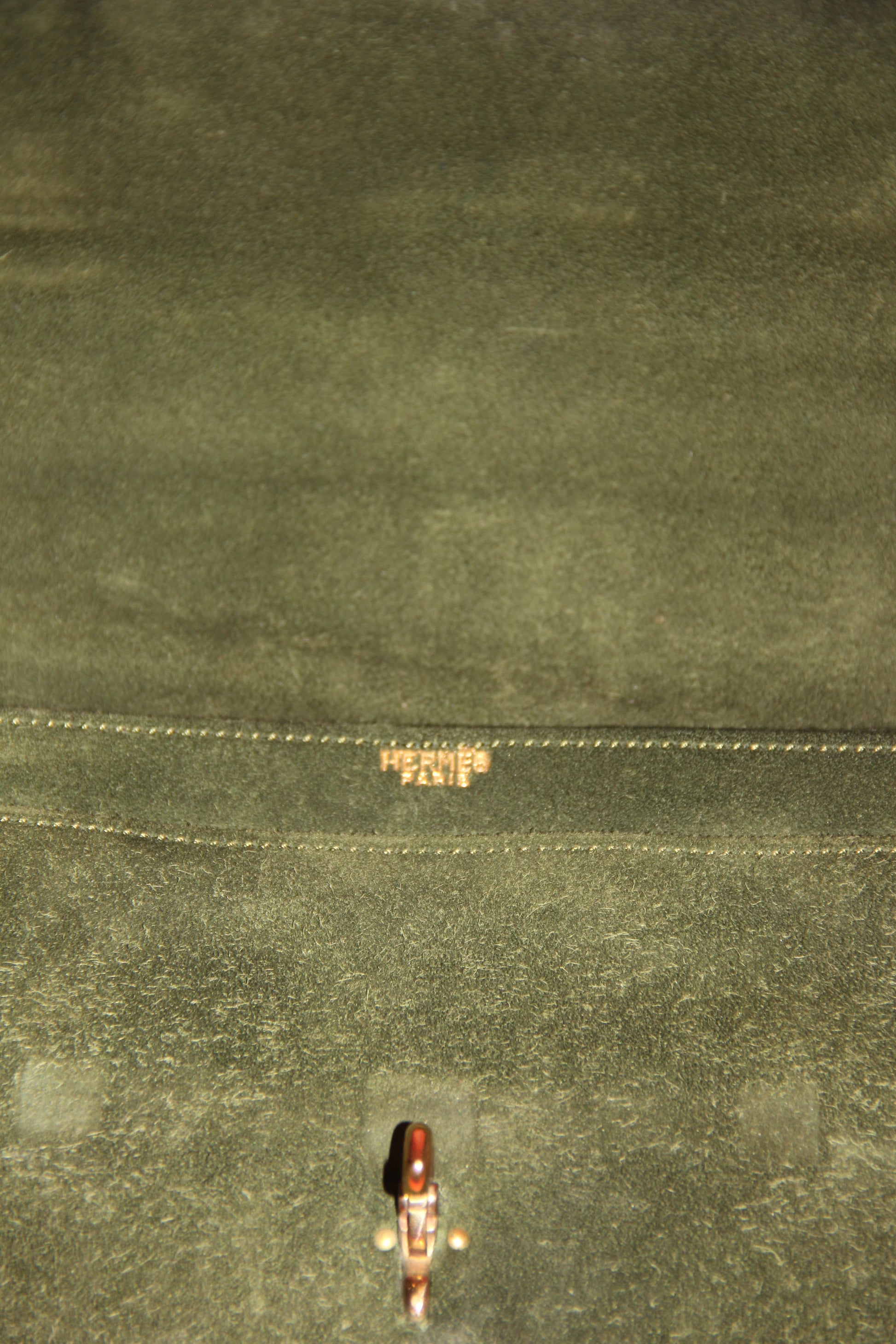 Sublime sac à main "Palonnier" en veau doblis kaki de la maison Hermès - Thème Circa 1960 vintage, véritable pièce de collection avec doublure en agneau vert.