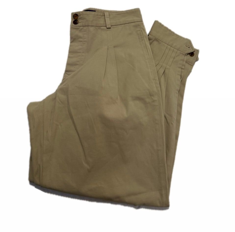 Pantalon en parfait état de la maison Ralph Lauren. Très beau modèle vintage, coupe taille haute, large puis resserré au niveau de la cheville.