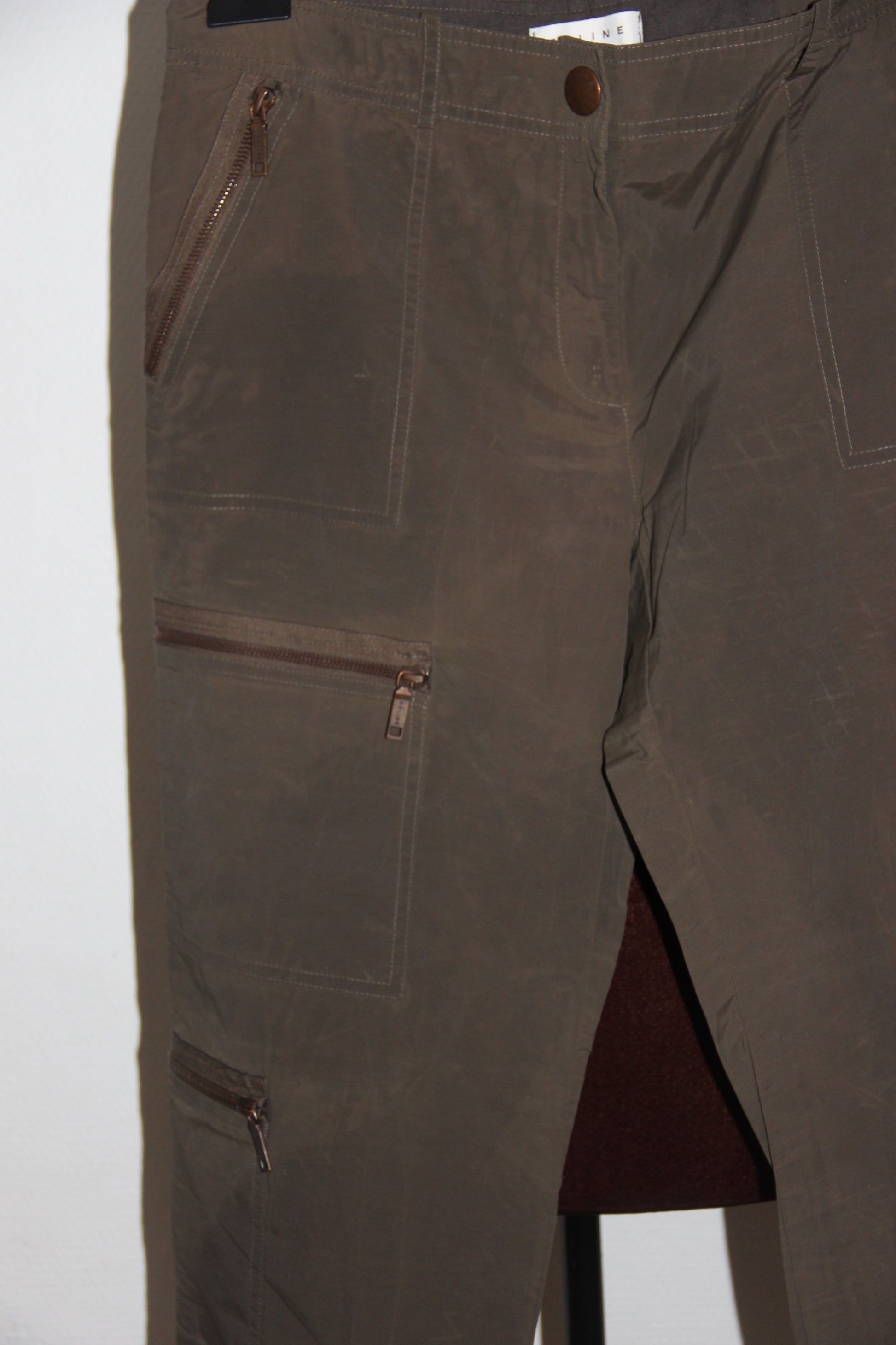 Pantalon Celine, coupe droite, long, multipoches, couleur kaki, T 40 (L)