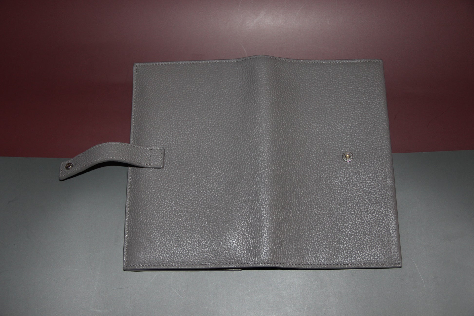 Portefeuille long en cuir grainé gris