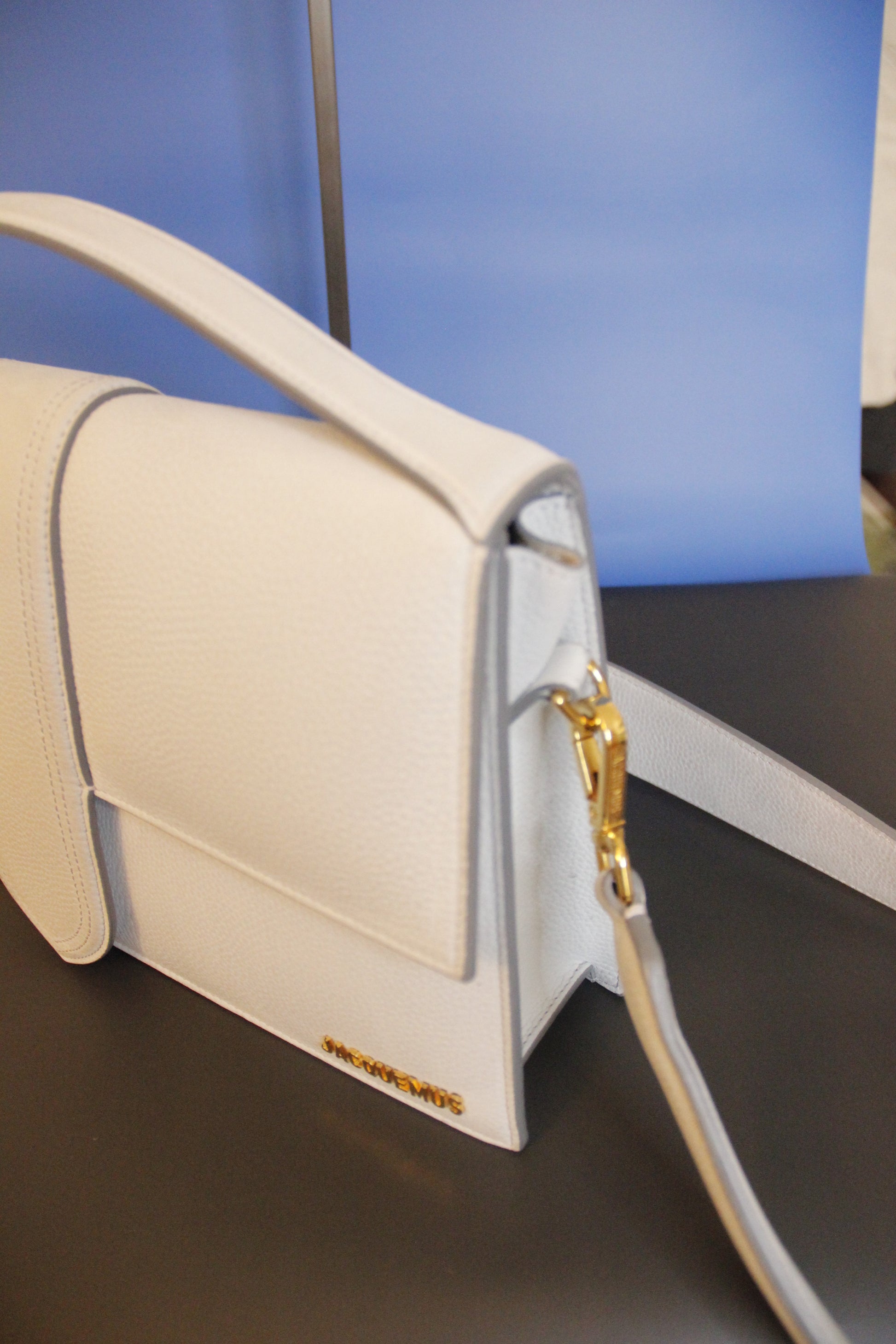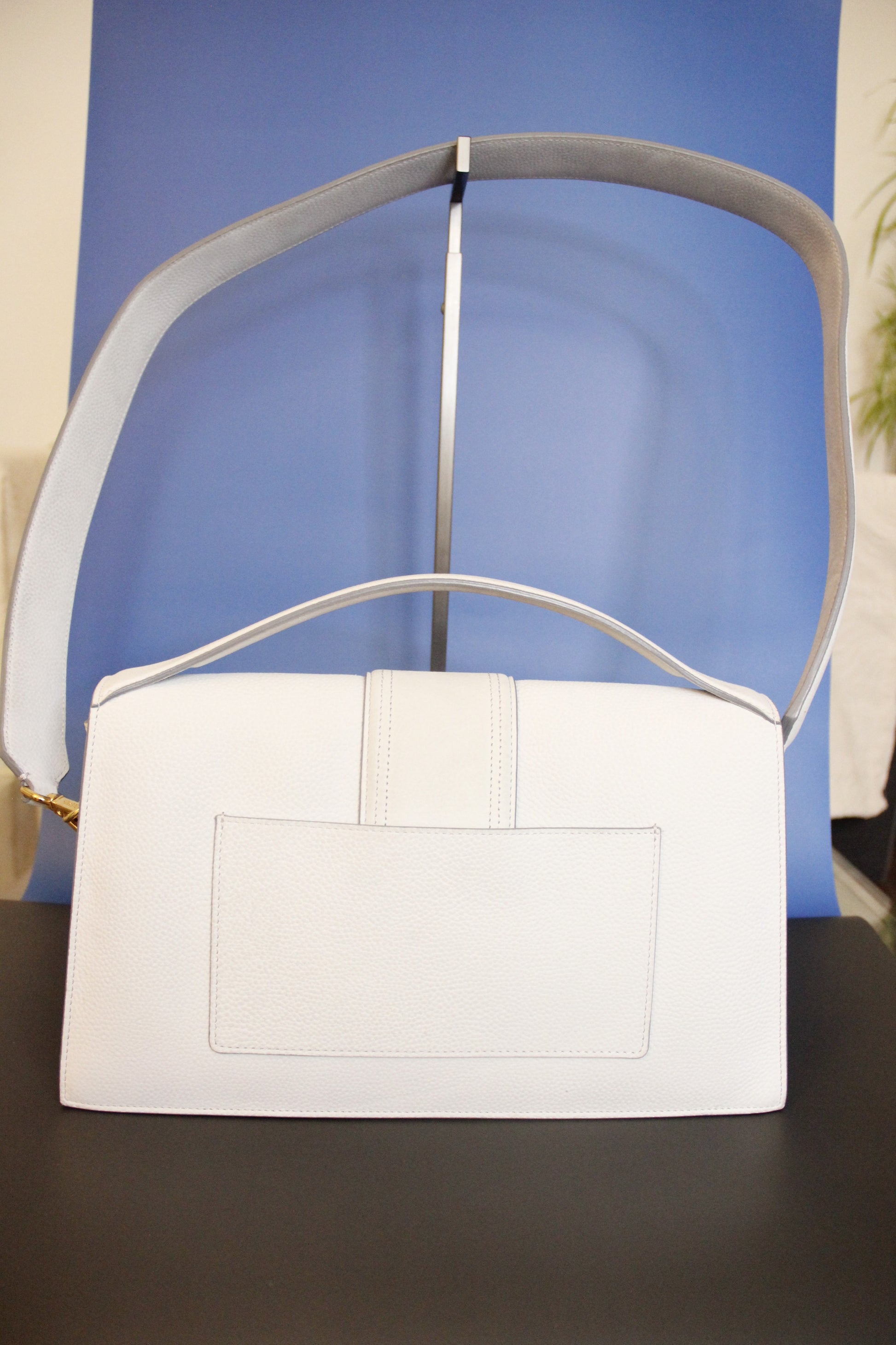 Célèbre sac à main de la marque JACQUEMUS, nous proposons à la vente ce joli modèle 'Le grand Bambino' couleur blanc pearl en parfait état.
