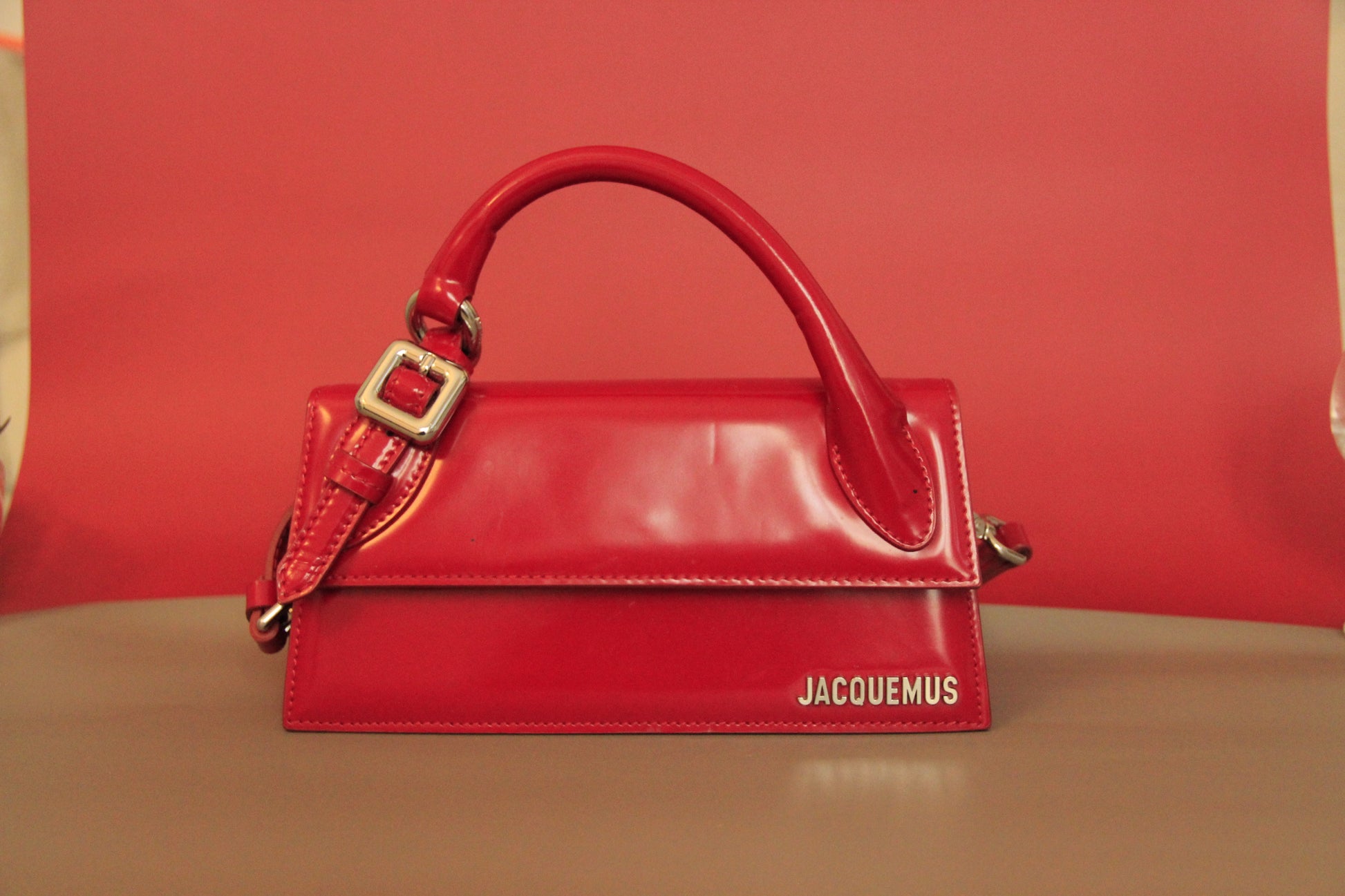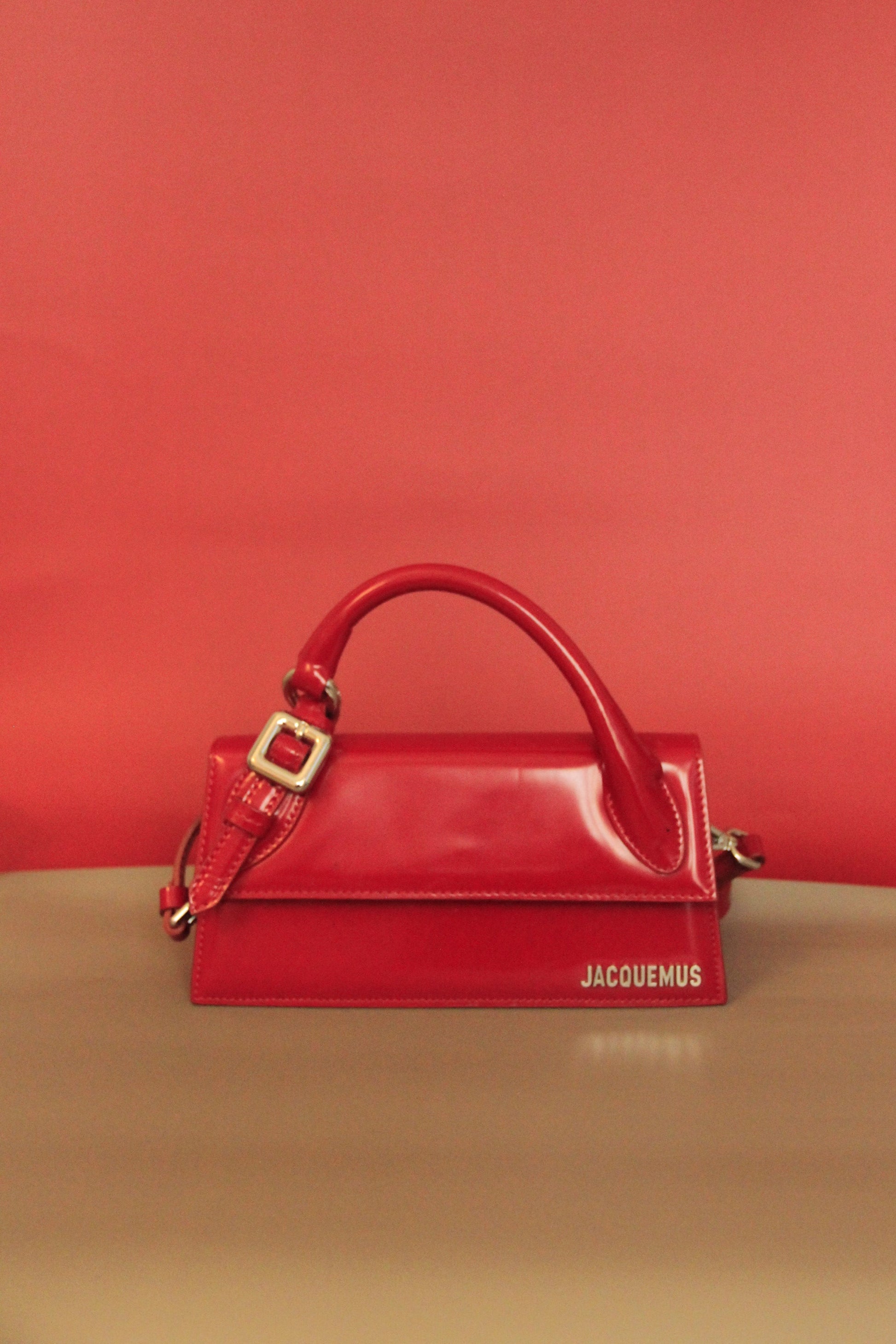 Sac à main JACQUEMUS Le Chiquito long rouge en cuir à boucle.